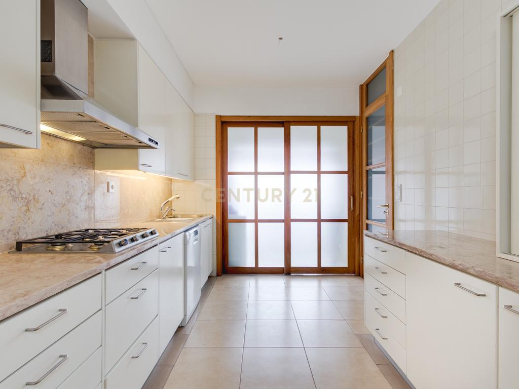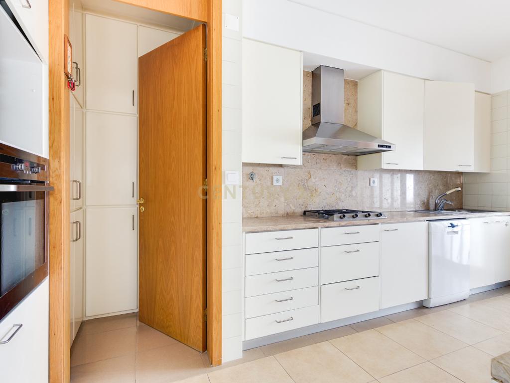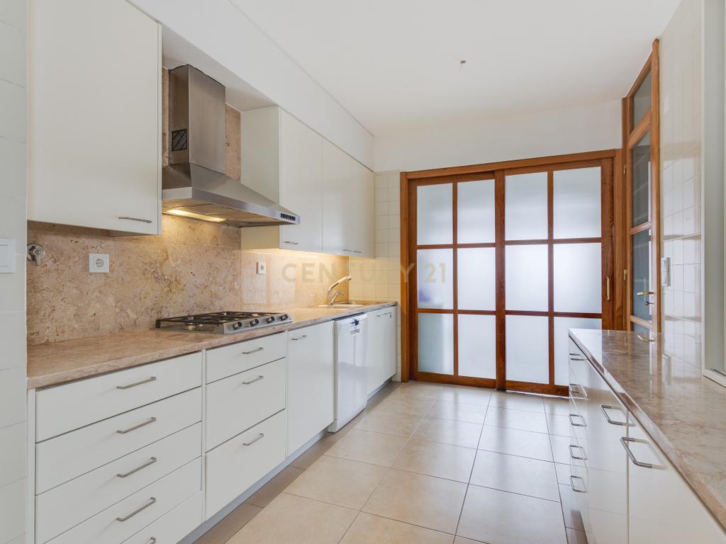 Conta com 4 quartos, todos com roupeiros embutidos, sendo um em suite, 2 casas de banho completas e 1 casa de banho de serviço. A cozinha está totalmente equipada e dispõe de despensa, oferecendo excelente capacidade de arrumação.