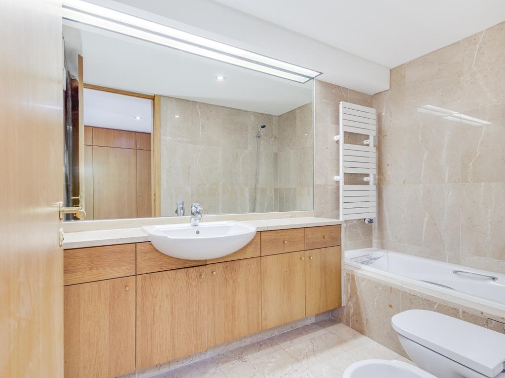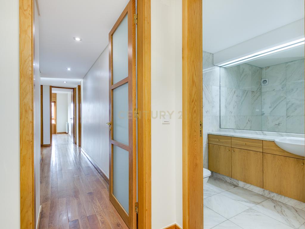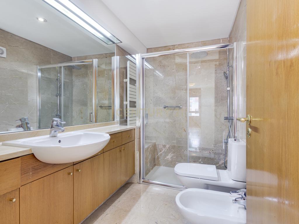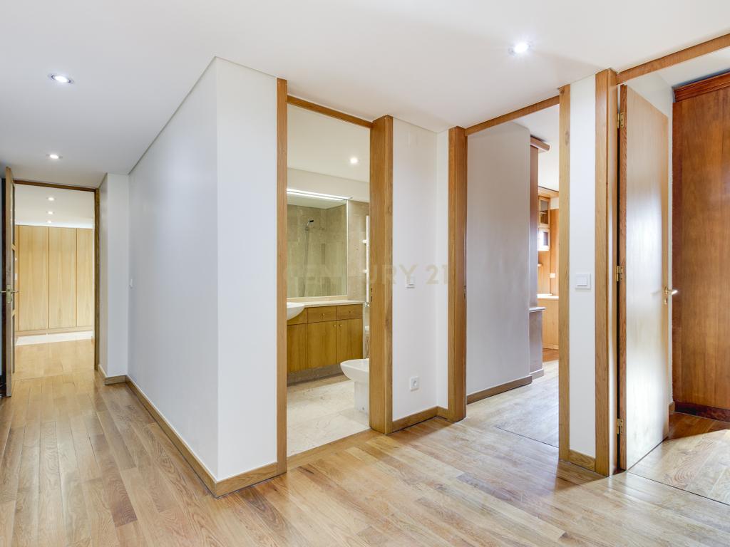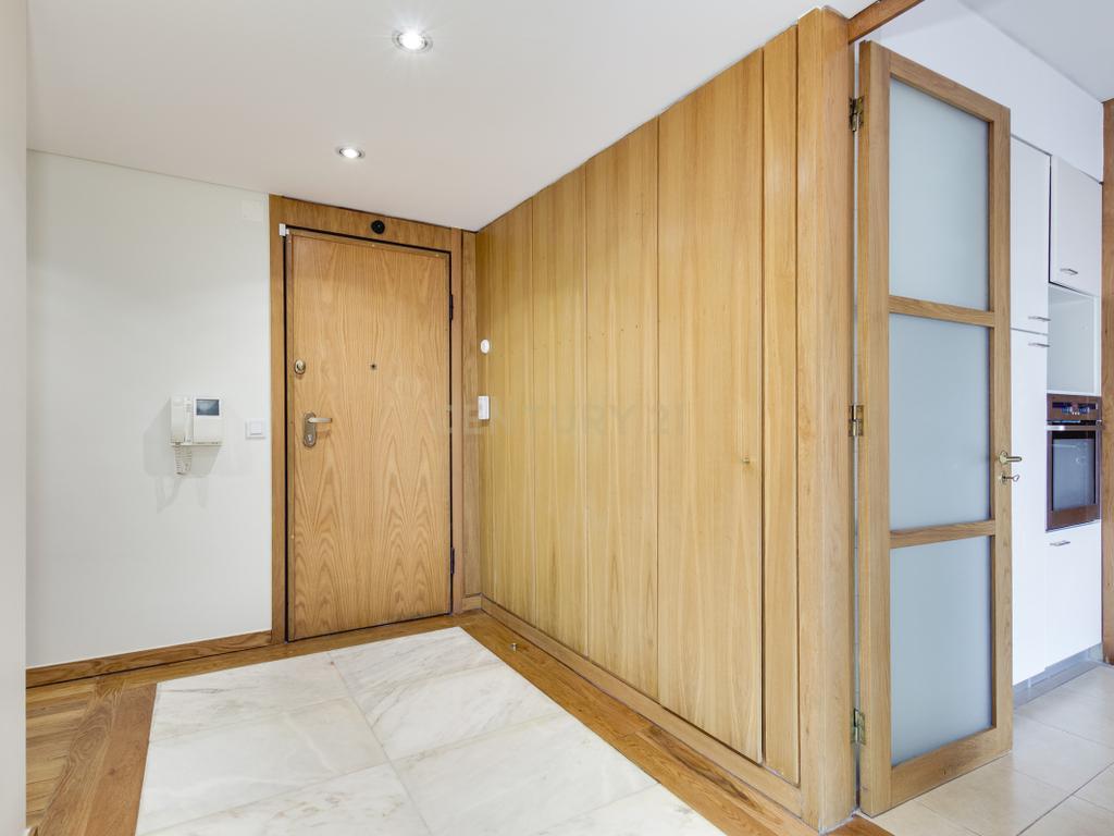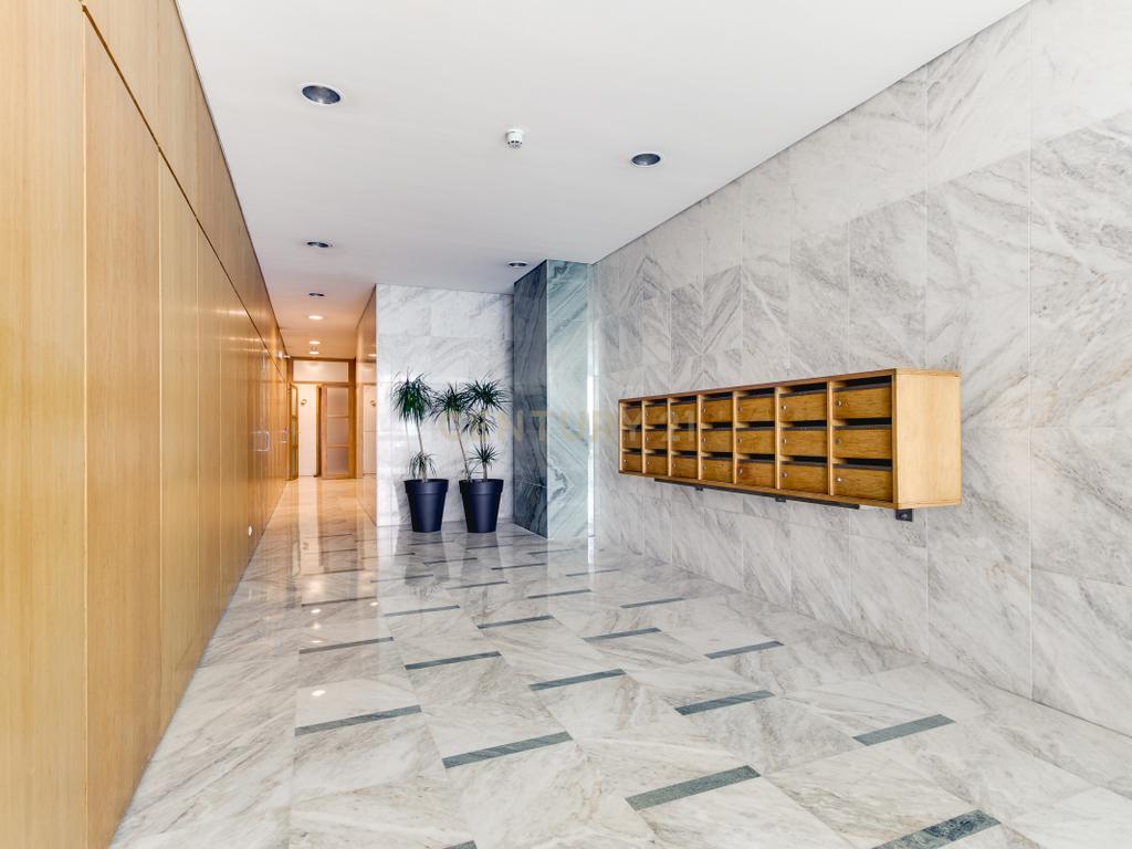 O apartamento apresenta acabamentos de qualidade e está equipado com aquecimento central, estores elétricos, toalheiros elétricos e vídeo porteiro. Inclui ainda box fechada para 2 viaturas e arrecadação.